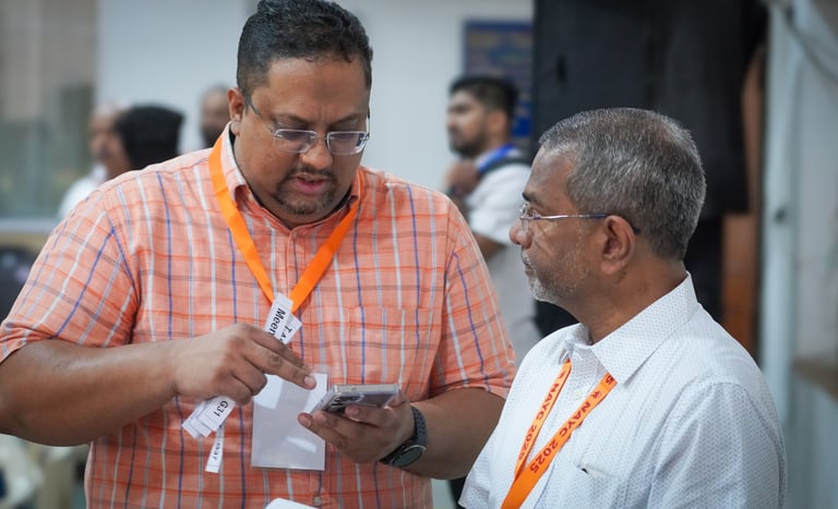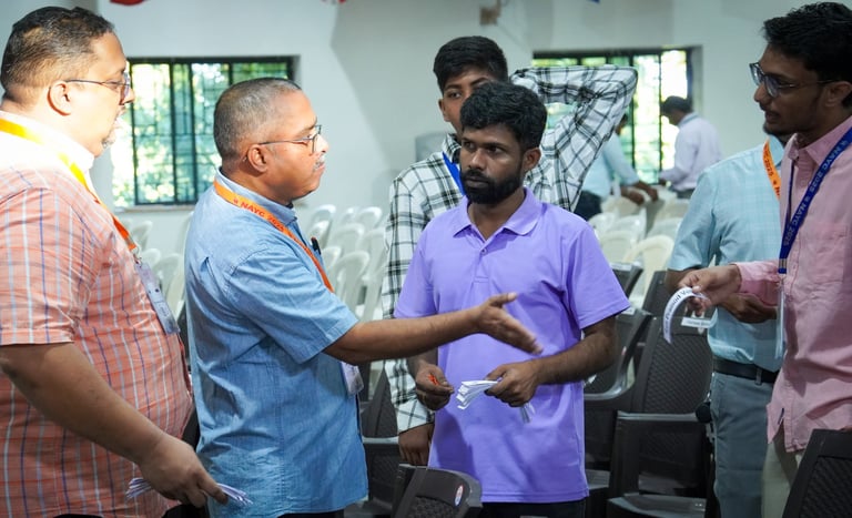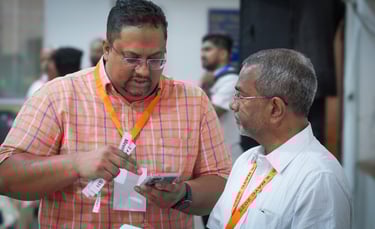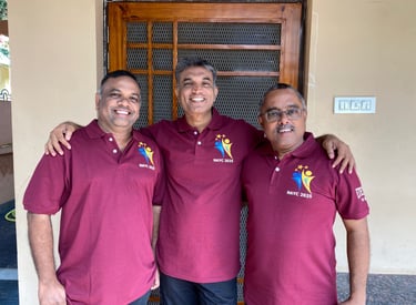 Bro. Harbhushan Ravna, Bro. Jim Mathew, & Bro. Monsy Abraham (left to right) - pioneers of NAYC meet for the thanksgiving meeting of NAYC 2025!