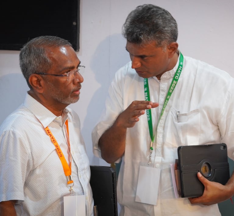 Bro. Monsy Abraham and Bro. Harbhushan Ravna addressing the congregation at the closing session during the second NAYC in 2025
